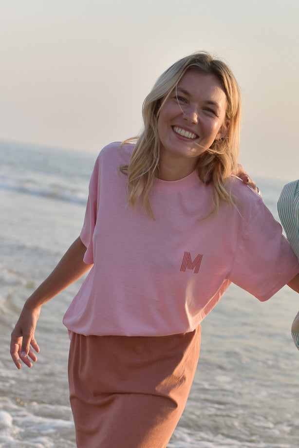 It's impossible to discover Marlot Paris T-shirts without mentioning pink. A color that we love to see in all its shades! Soft and luminous, this pink is found on our summer bestseller : an iconic organic cotton T-shirt embroidered with an M, perfect for softening a look and enhancing a tan. A must-have to bring softness and freshness to your seasonal wardrobe.