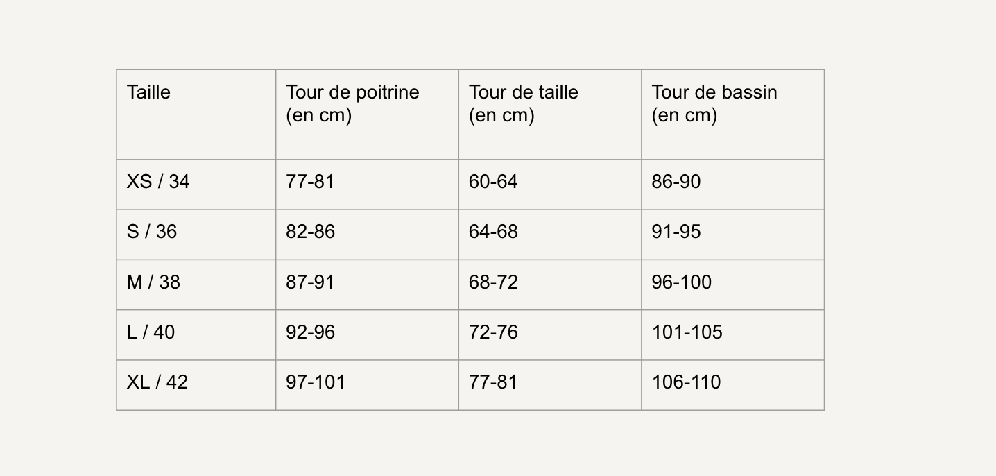 Now that you have your measurements, we invite you to compare them to our size chart to identify your size at Marlot Paris!